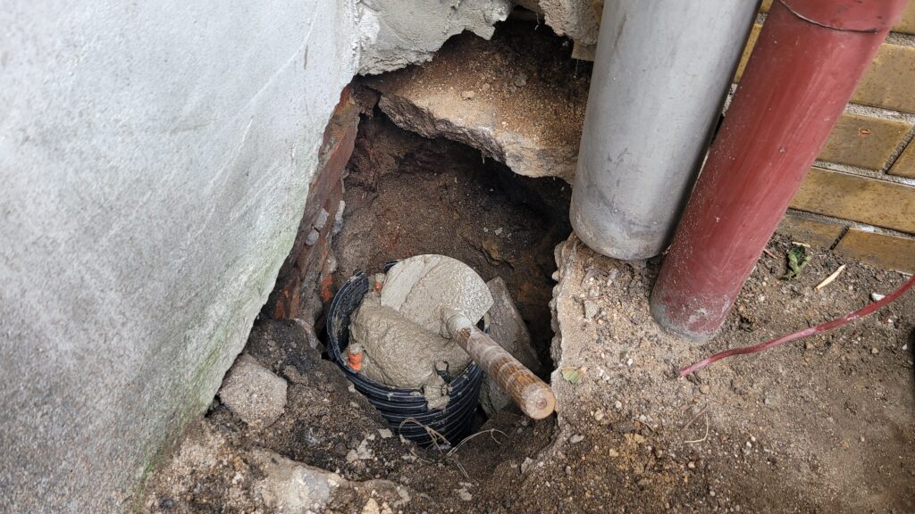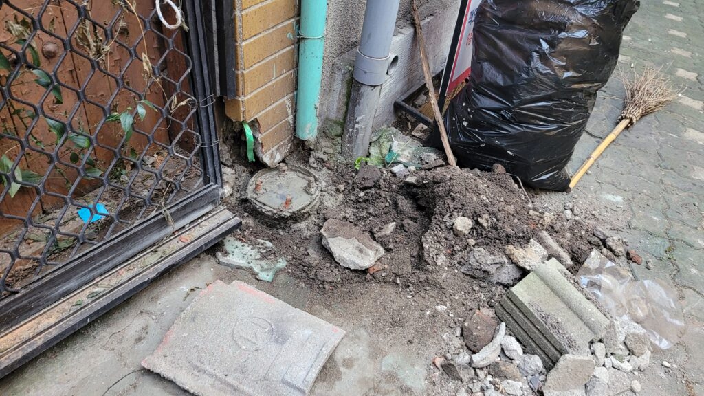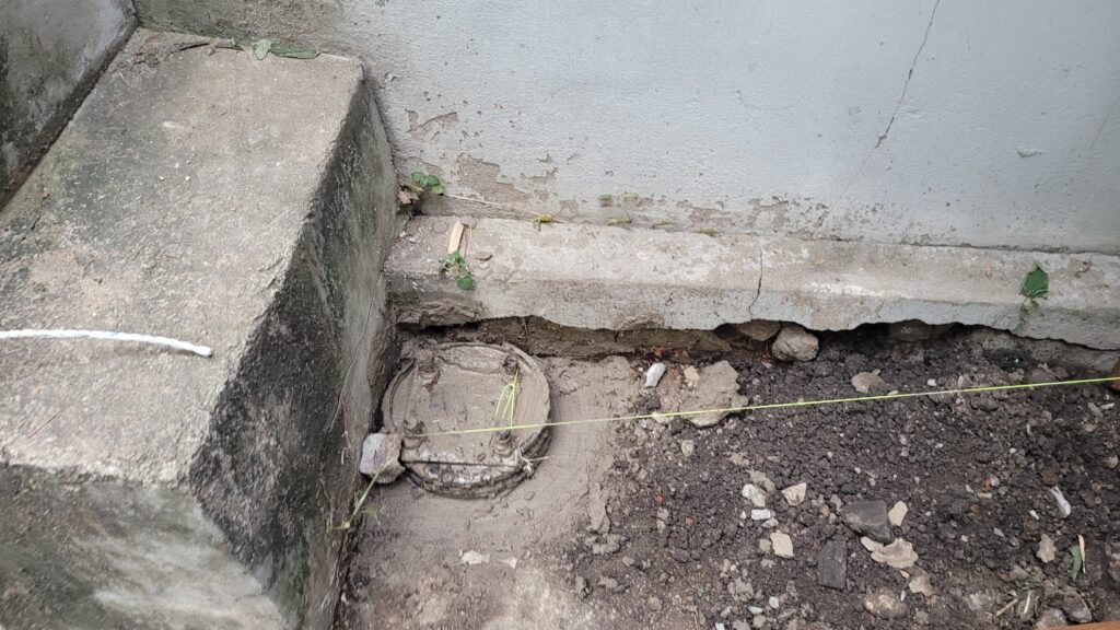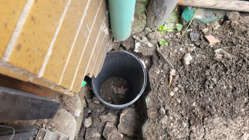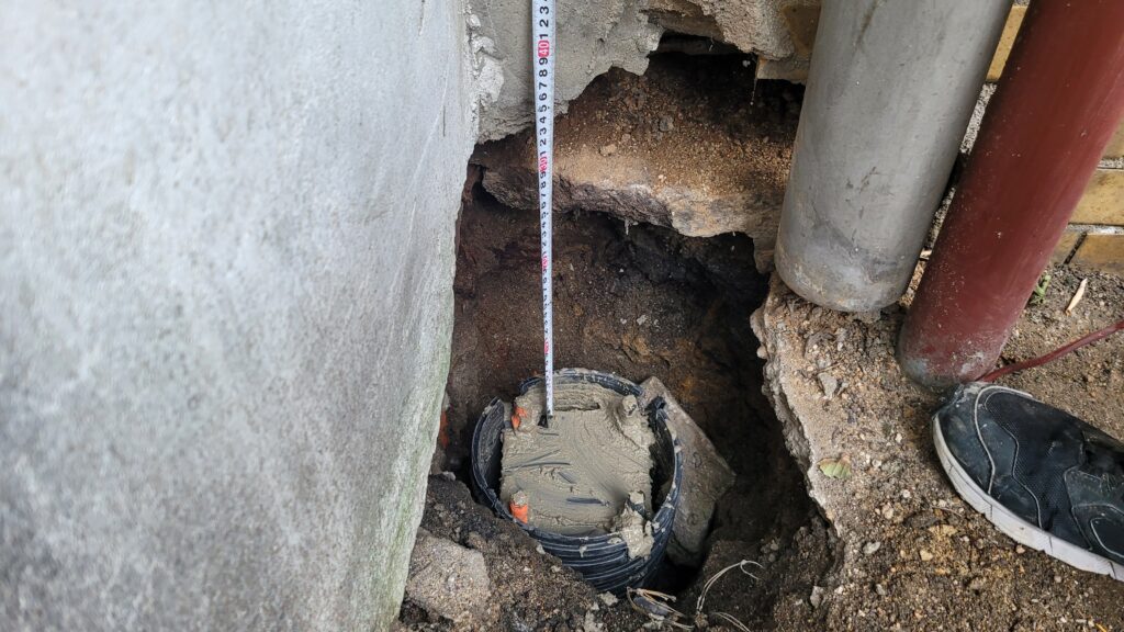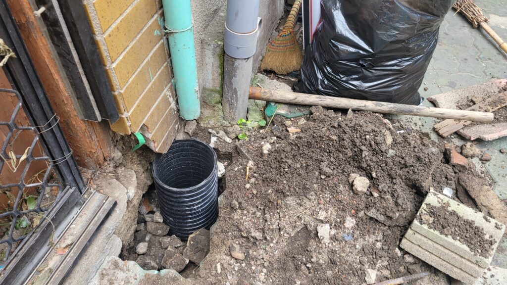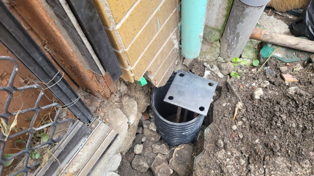 기둥 세울 곳에 띵을 파고 150mm 이상의 pvc 관을 묻은 상태이다.